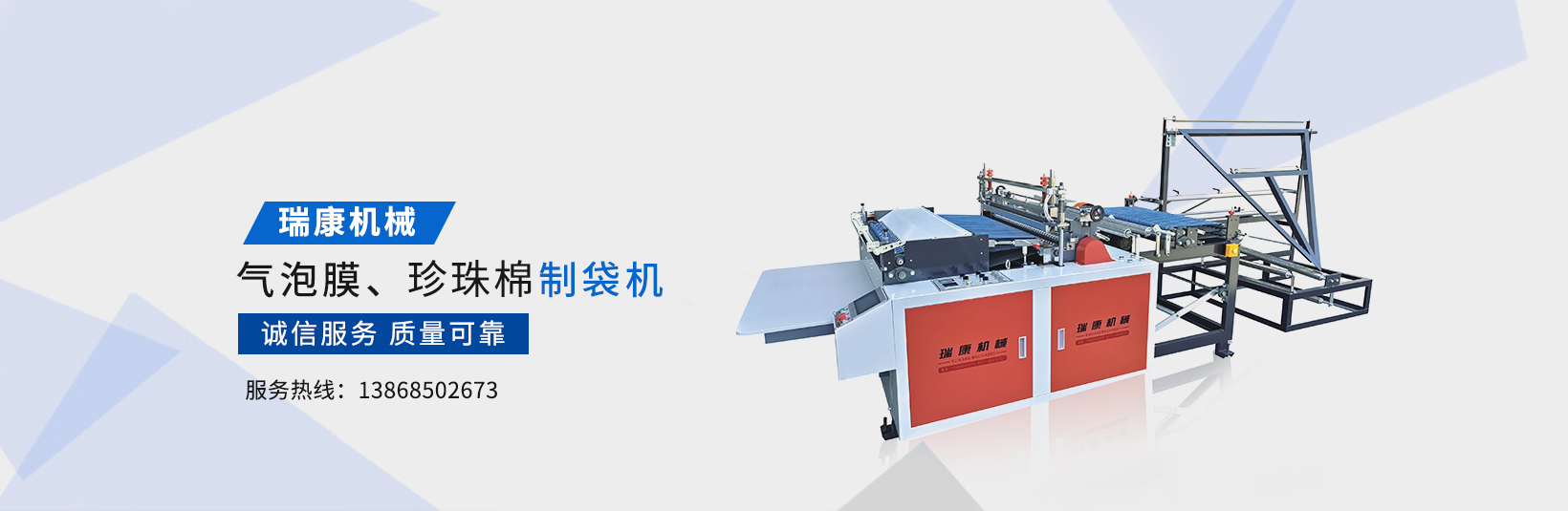溫州瑞康機械有限公司(www.wzruikang_com.syljs.cn)主要生產氣泡膜機,快遞袋制袋機,包裝機,制袋機等設備。瑞康機械是國內生產塑料軟包裝系列機械設備的專業廠家之一。產品質量可靠、誠信服務,深受用戶好評,市場占有率節節攀升。